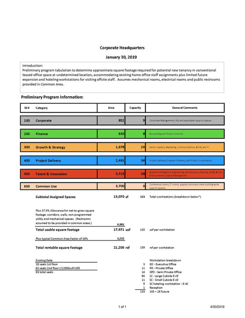 Corporate Headquarters preliminary space planning