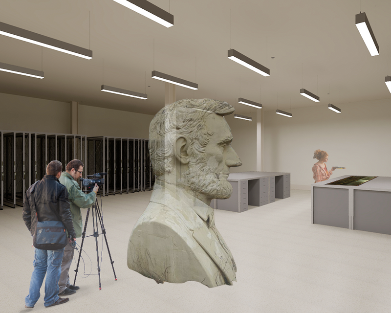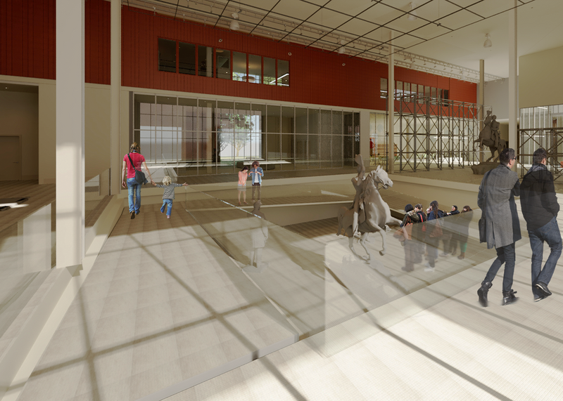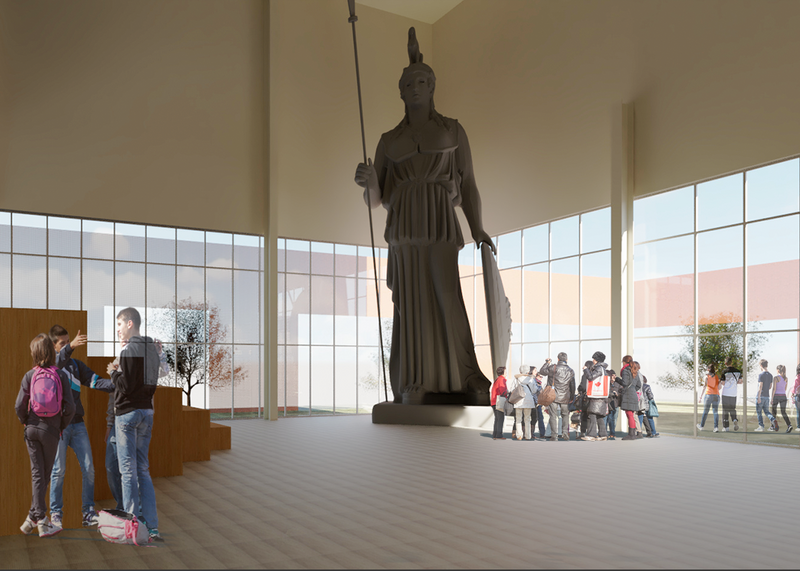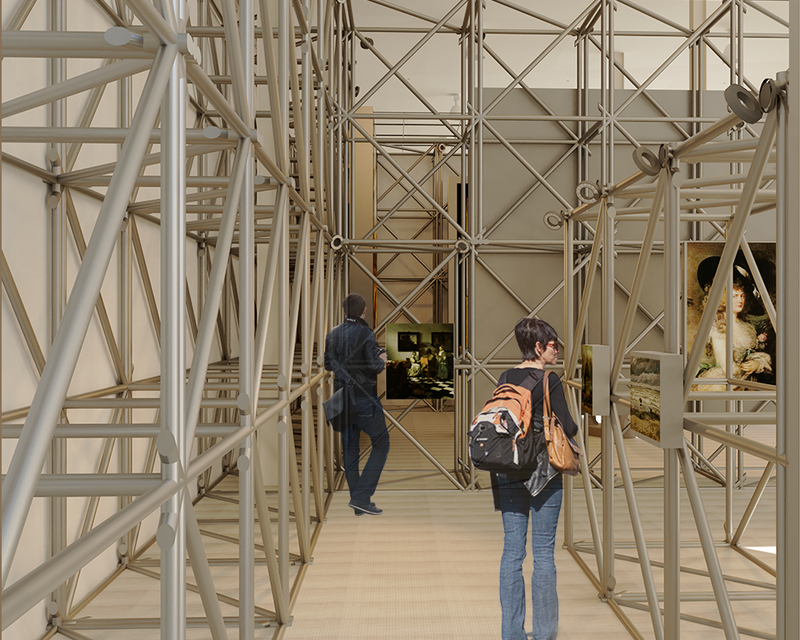 The Museum of Lost Art and Monuments curates an excitement for knowledge and discovery, with respectful exhibitions of the historic works and pieces. The museum features the preservation of artifacts through the resource spaces, including the Restoration and Preservation room and Research Libraries, while also serving as a place for storing works while exhibits are transitioning. The dynamic exhibits complement the curated spaces, as the use of scaffolding structures and temporary exhibits emphasize the temporary nature of certain cultural elements. The museum focuses on the impermanence of arts and monuments, with particular attention to how history has lost these works over the course of many centuries.
