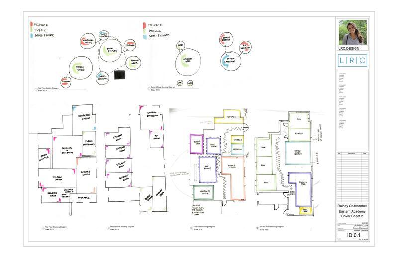 This project includes a set of construction documents created from a past NCIDQ Practicum that implements critical steps within the design process to create a final presentation. The set includes floor plans, dimensioned floor plans, finish floor plans, elevations, an RCP and switching plan, electrical plan, furniture plans, and millwork details. In addition, the bubble and blocking process is diagrammed within the set as part of the programming throughout the assignment.
