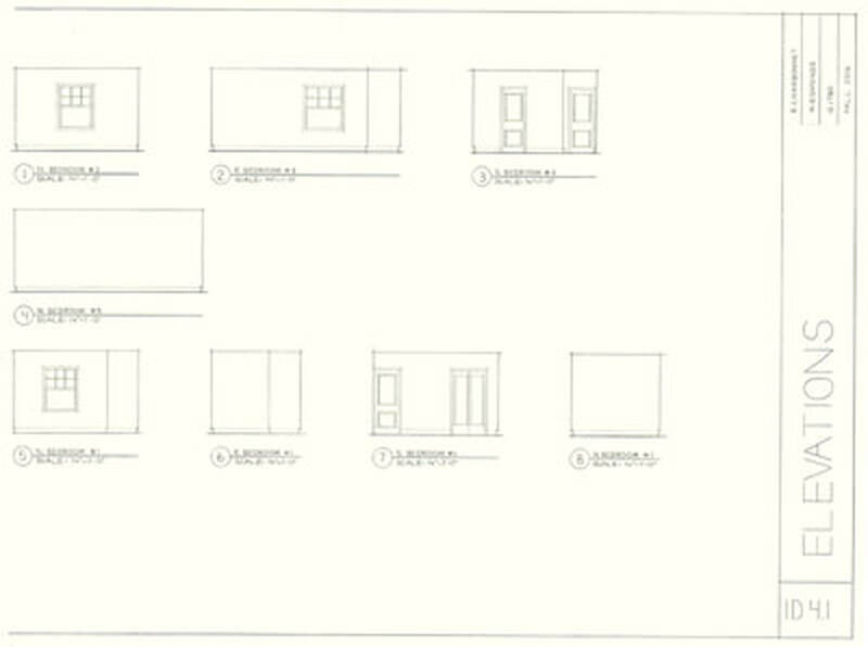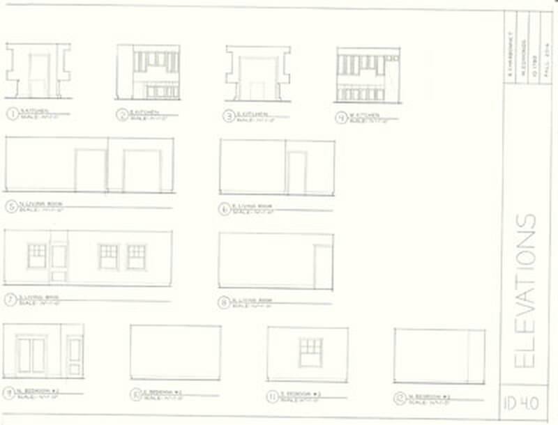 Final project for ID 1780 Technical Drawing that included replicating a floor plan and room elevations at different scales. All drawings are hand drafted and drawn to scale, including oblique drawing.