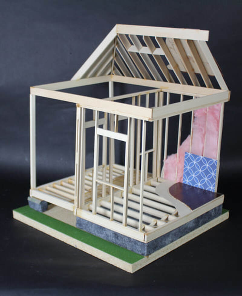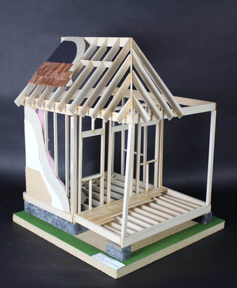 A model displaying knowledge and understanding of the structural elements of a light wood framing construction project. The model contains all necessary requirements for a full sized light wood framing home.