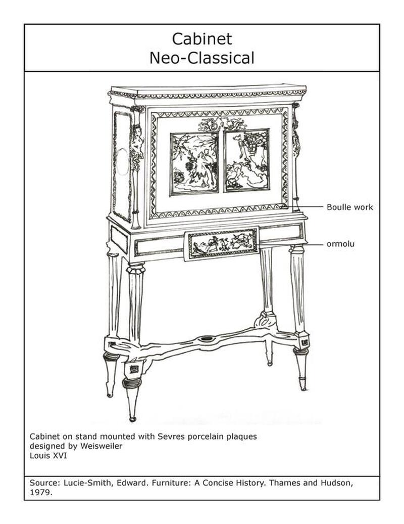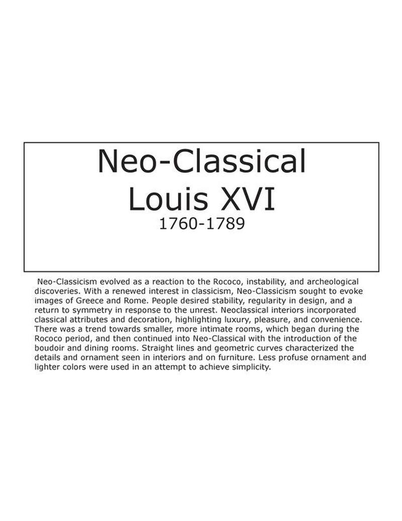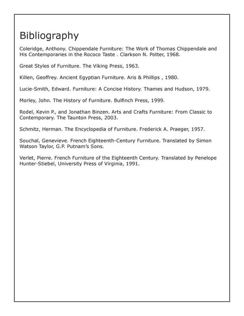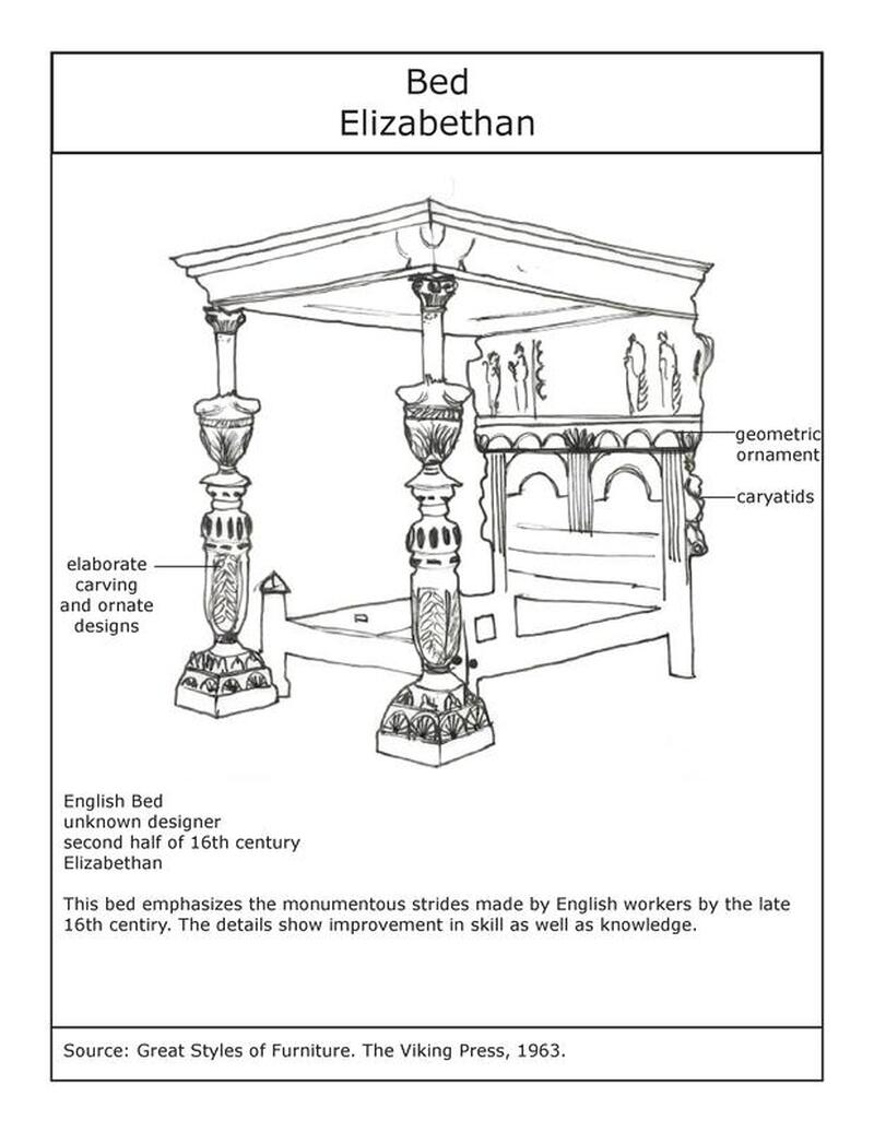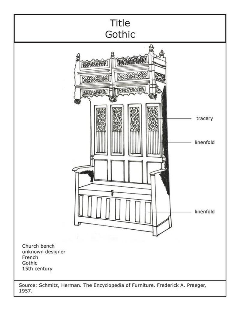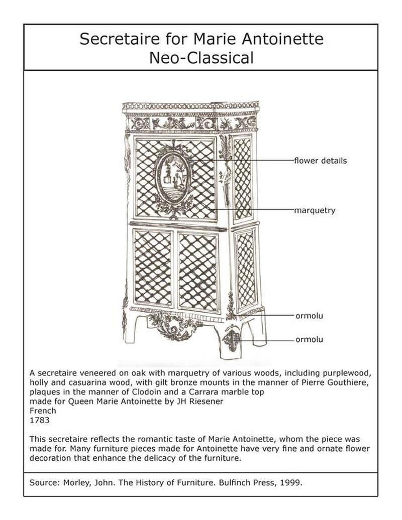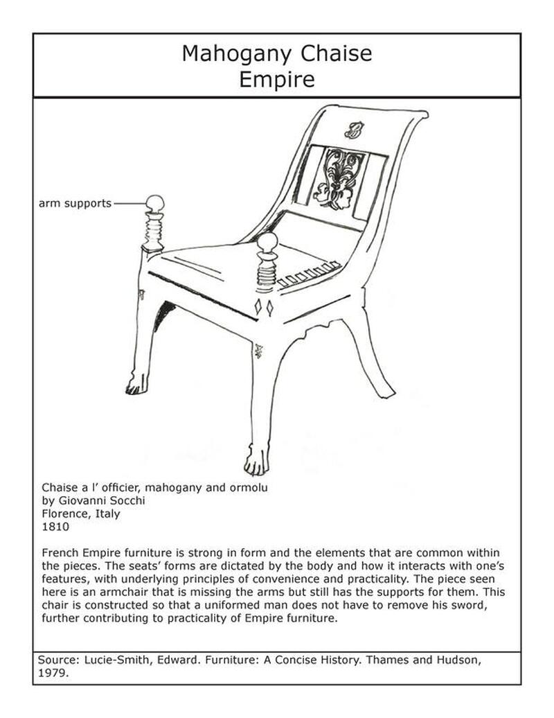 Highlights the various types of furniture seen through historical time design styles including Egyptian, Roman, Gothic, Elizabethan, Italian Renaissance, Baroque, Rococo, Neo-Classical, Empire, and Middle Georgian.