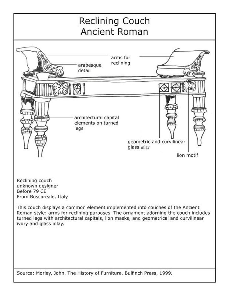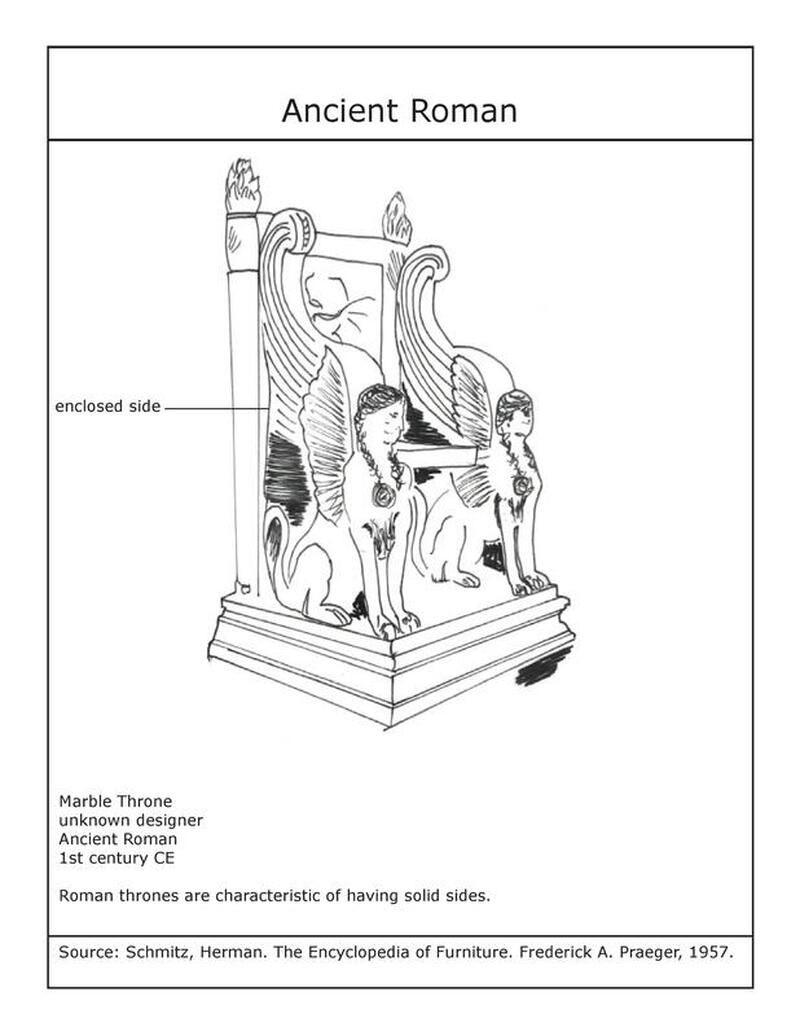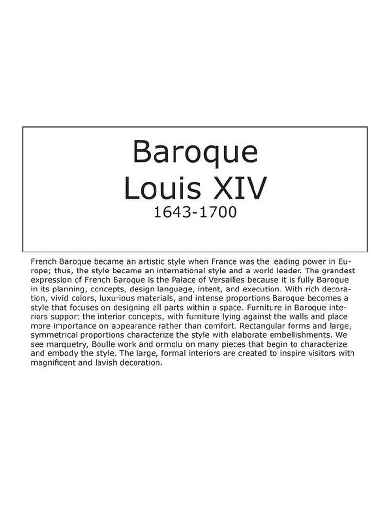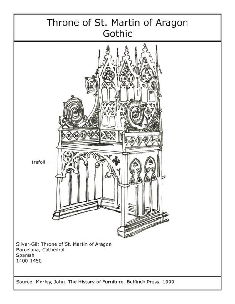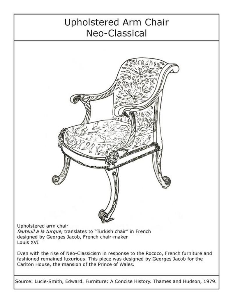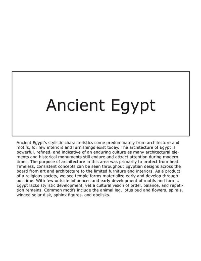 Highlights the various types of furniture seen through historical time design styles including Egyptian, Roman, Gothic, Elizabethan, Italian Renaissance, Baroque, Rococo, Neo-Classical, Empire, and Middle Georgian.