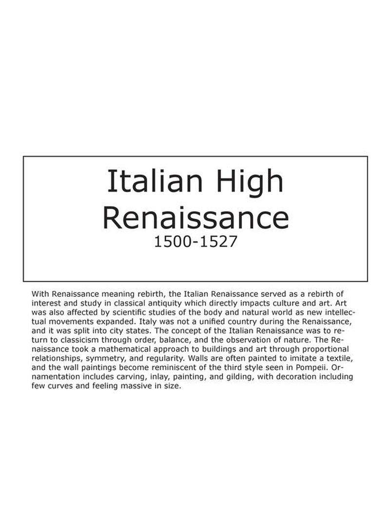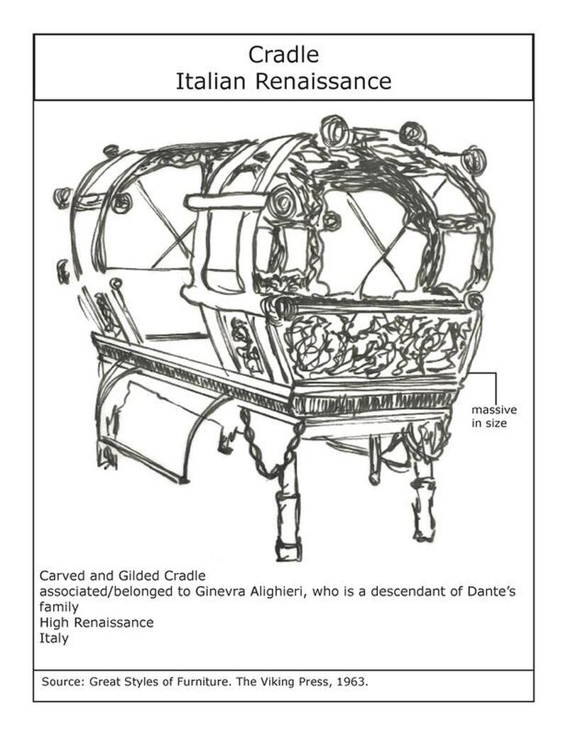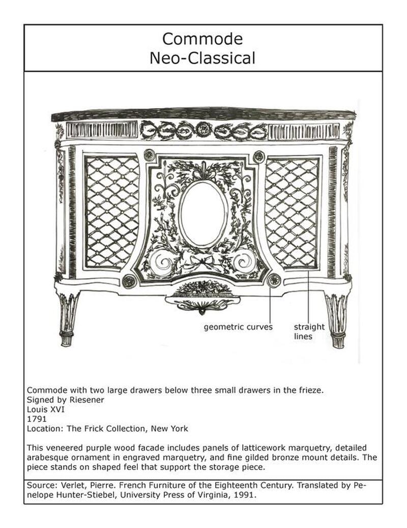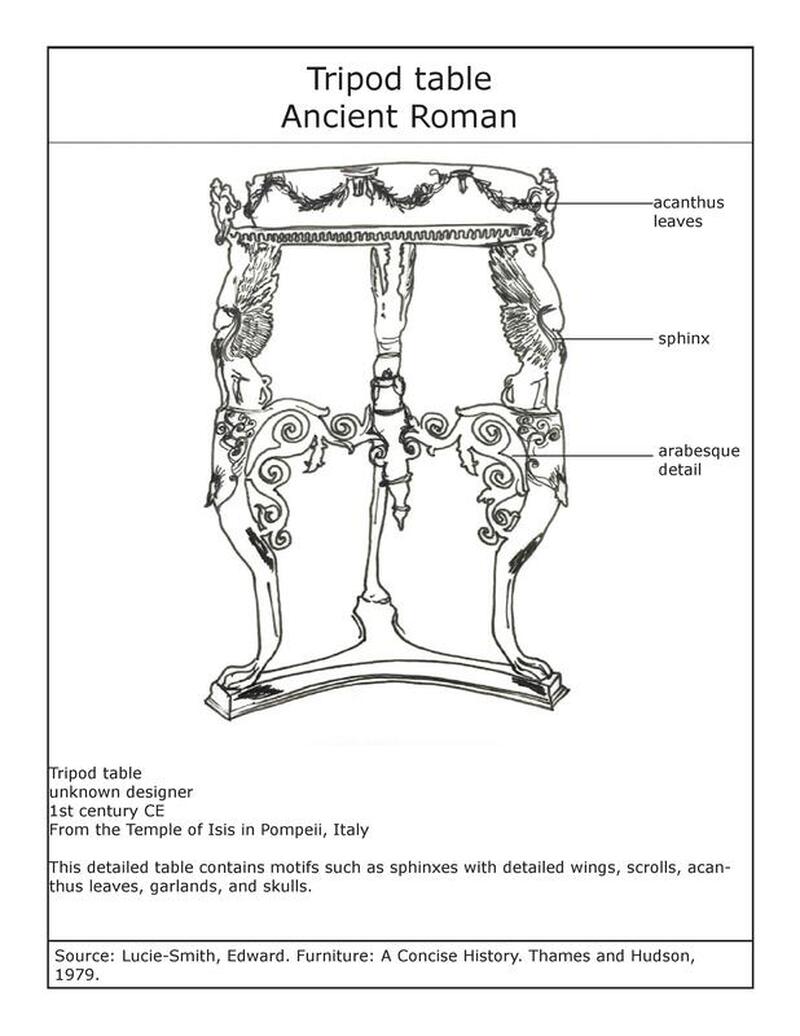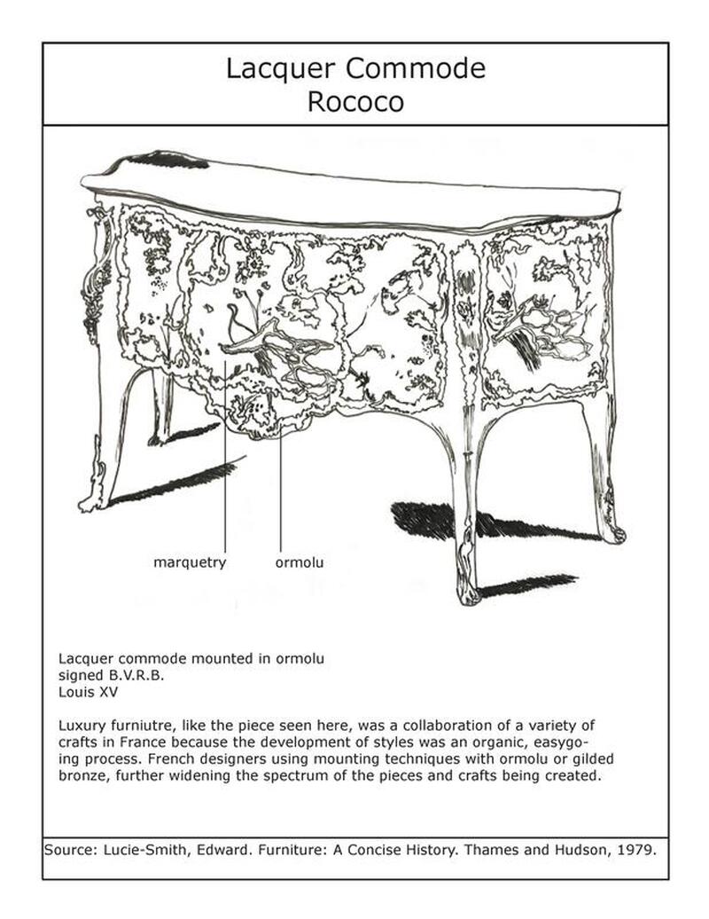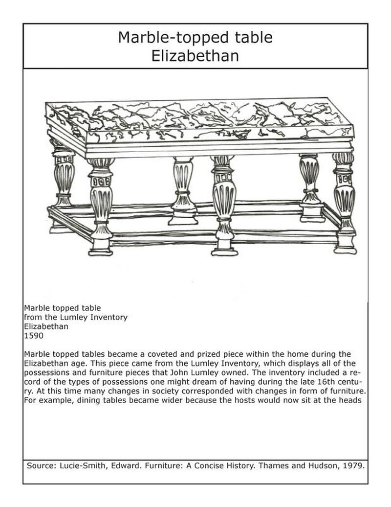 Highlights the various types of furniture seen through historical time design styles including Egyptian, Roman, Gothic, Elizabethan, Italian Renaissance, Baroque, Rococo, Neo-Classical, Empire, and Middle Georgian.