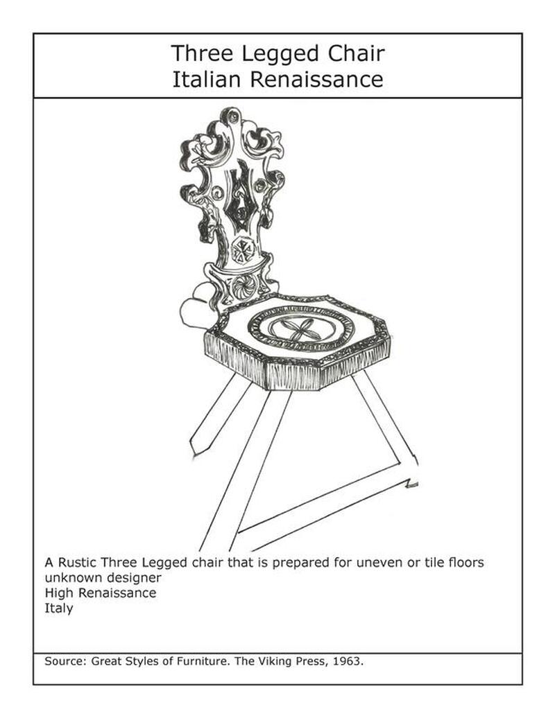 Development of furniture sketches for a course dedicated to the History of Interior Design